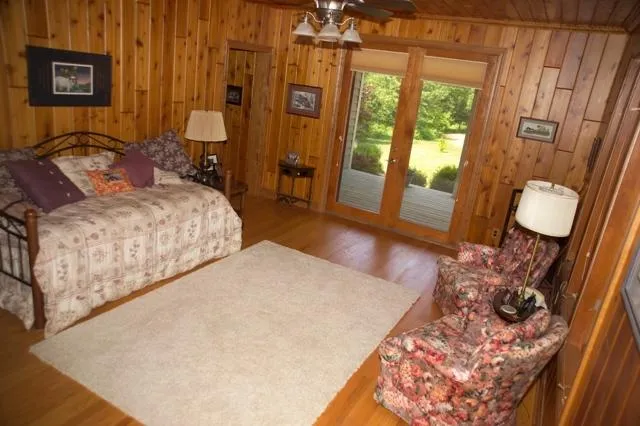Secluded executive home is tucked back in 27 acres of woods off a country road providing endless recreation with privacy and views. It has over 1600 sq feet of outdoor decks providing additional living spaces from which to enjoy the private setting. This quality-built executive home is 3300+ sq feet with 4 bedrooms, 2.5 baths and 4-season room. It has an open floor plan with hardwood flooring and 10 ft high ceilings. The huge kitchen features cherry cabinetry and Corian counters with pull-out drawers. There is ash flooring in the kitchen with oak flooring in the living room. The walls are tongue & groove cedar with fireplace full mason stone construction. There are 2 wet bars and Kohler fixtures. The master suite is quite exquisite with dual vanities, walk-in shower and soaker tub surrounded by windows for incredible wooded views while relaxing. The home is ...