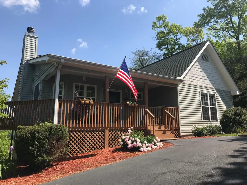 WOWZA. The whole package... 3BR/3BA with KILLER views. 2 generous MASTER suites on the main floor, open great room,Granite tops in kitchen, large windows, laundry on main. Wrap decks and porches. Vaulted Great Room w/ Gas log fplc. Hardwood floors. Tiled kitchen floor. 2x6 construction. Full lower level w/ Den , pellet wood stove, one car garage w/ large work area or storage space, BR/BA. Detached 18x24 finished multi-purpose workshop that matches the house. Lots of parking on main floor and lower level. Raised garden beds. Landscaped with beautiful choice species. Lots of flowers and wildlife. Gentle back yard yet ridge line construction. Lots of storage. Yard for pets and kids to play. Paved Rd. Views Views Views.