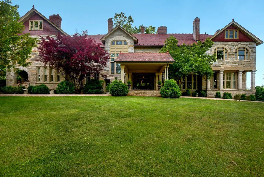 Set on nearly 300 acres of lush Virginia countryside with sweeping views of the Blue Ridge Mountains, Elway Hall captures the timeless elegance and fairy-tale romance of a bygone era. This extraordinary, Edwardian mansion with more than 15,000 square feet was built in 1907 by prominent industrialist and railroad tycoon, Johnson Newlon Camden for his daughter Annie and son-in-law, General Baldwin Day Spilman. Her ethereal image is reflected in three-story custom Tiffany windows over the grand carved oak staircase. The estate has been home for the past two decades to internationally acclaimed interior designer and author, Barry Dixon and award-winning Washington, DC television news personality, Will Thomas. Dixon created a residence that brings the past into the present by incorporating the most modern conveniences while maintaining the timeless elegance of the Edwardian period. Renowned architect H.H. Richardson used a colorful mix of coursed-stone blocks which add pattern to the massive masonry walls accented with red tile shingles in the gables and a terra-cotta tile roof. The interiors feature approximately 13-foot ceilings, a stunning Dixon designed kitchen and eat-in butler's pantry with a built-in banquet, walk-in larder, cobbled limestone floors, 9 dedicated second floor bedrooms, 5 additional bedrooms on the third level used as offices, 7 bathrooms, 17 working wood burning fireplaces, original stone walled lower kitchen and gated wine cellar are among the long list of incredible and timeless amenities. Additional features include a custom swimming pool which blends perfectly with the landscape surrounded by stone wall ledges, a classic restored brick barn and silo with copper roof including an extraordinary second floor entertaining space. An octagonal hen house girds the entrance to vegetable and cutting gardens filled with Dahlias and Hollyhocks where a herd of Angora goats and Dolly the lama keep watch nearby. Designed for entertaining, Elway Hall is one of the most celebrated estates in the Washington region and perhaps the state of Virginia. Less than one hour to the heart of the nation's capital, 45 minutes to Dulles International Airport and 10 minutes from Warrenton Air Park often used for private jet aviation. Strength, beauty, inspiration. Elway Hall, Warrenton, Virginia.