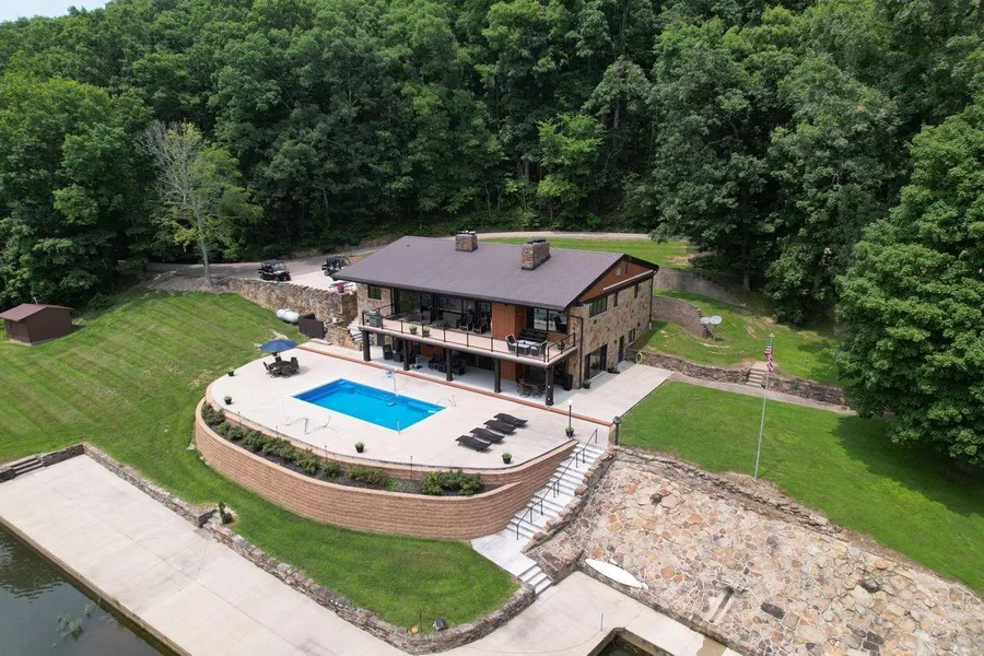 272 acres for sale in Brown County, IN. Don't miss this opportunity to purchase this secluded property with a fully furnished Lodge with pool and Log Cabin, Gate House with Barn, Maintenance Barn and a 35 acre stocked lake with a boat slip and dock. Over $250k worth of equipment.