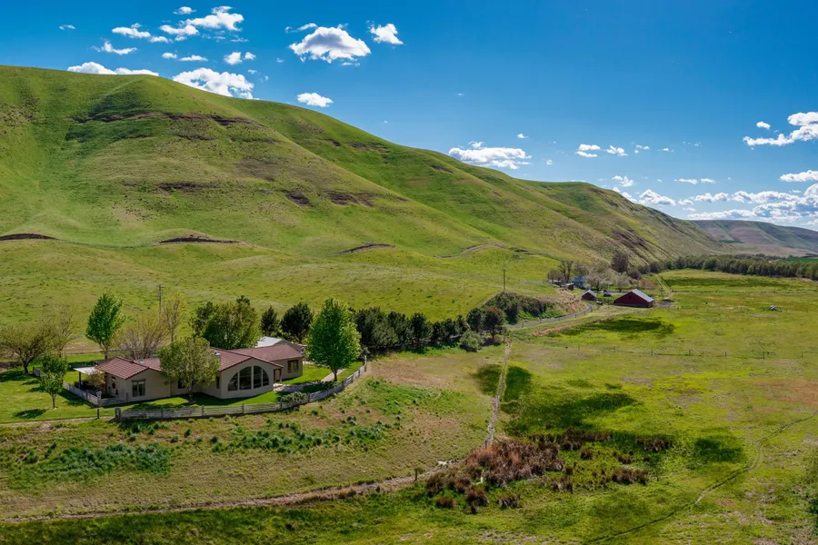 Easily accessible yet secluded, this 272-acre homestead sits on a private mile-long stretch of Tucannon River frontage. Featuring multiple ponds, fenced pasture, pod irrigation, 60-acre water right, barn/outbuildings, 2 homes & 4 designated tax tracts. Home to a veritable cornucopia of wild game, from sea-run steelhead trout, upland birds & waterfowl, to larger game such as deer & elk. A true paradise for the sportsman & nature lover alike. A beautiful custom Santa Fe Ranch style home with vaulted ceilings & serene views wraps around an inviting outdoor oasis featuring a solar heated in-ground pool & a charming patio that connects to a 3 car garage & studio/shop space. Stay connected with "Starlink" Satellite internet & just 15 minutes to town!!