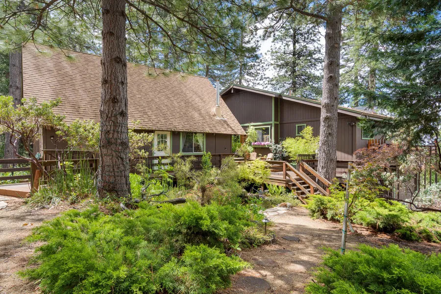 2 homes offer exceptional mountain living! The main home has new flooring throughout, updated baths, kitchen and energy efficient cooling and heating. This quintessential mountain retreat is perfect for VRBO, friends and family. They will enjoy this one of a kind 2 + acre property. Check out the sports court, you read that right! So much fun to be had. Sit pool side by day, and cozy up next to the fire pit in the evenings. Watch the sun set through the trees toward the valley from the large deck. Both homes are open and bright, with vaulted ceilings creating a loft like experience. Style and character are abundant in these homes. Deer fencing surrounds the home providing protection for your plants and keeps your four legged critters safe. Extensive thought was given to the yard; a custom water fall flows into a large KOI pond, surrounded by lush vegetation. Golfing, mountain hiking, wine...