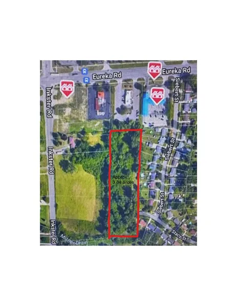 Almost 4 acres of land near corner of Eureka & Inkster Rd! Deep 800 ft lot, currently commercially zoned, could possibly be switched to residential with access from Stacy St, 3.8 acres, lot size is 205 x 800 ft apx, located a 5 minute drive from Southland Center & Taylor Sportsplex, property is close to many other shops & restaurants, buyer/buyer's agent to verify all information, property is in early process of lot split - see listing agent for more information, all data apx.