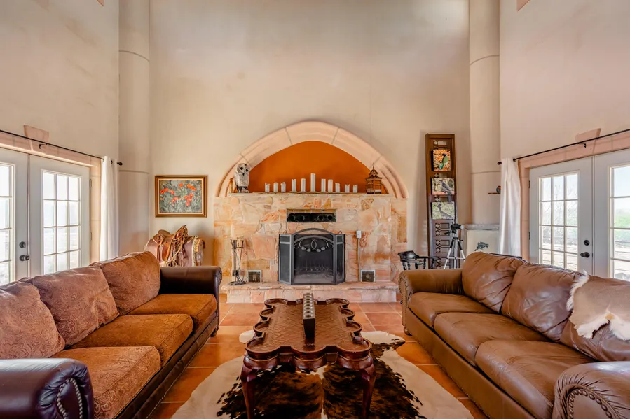 The house is going to be a 2,660 +/- Sqft., two-story house built in 2004 with tile throughout the first floor, amazing natural light, 22-foot ceilings, and an amazing fireplace in the middle of the living room great for entertaining guests. Oversized porches on both sides of the house allow for a great place to have coffee in the morning or drinks in the evening. A good-sized equipment shed is close by, along with some cattle pens and small utility shed. McCoy water and Karnes electric are going to the property.