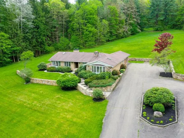 Stunning stone & brick ranch on 11+ scenic acres in Youngsville, PA. This 2,660 sq ft single-story home offers 2 bedrooms, 3 full baths, an office/optional 3rd bedroom, spacious living room with fireplace, formal dining room, eat-in kitchen, and recessed family room with a 2nd fireplace. Glass doors lead to a sunroom and a heated patio with breathtaking views and abundant wildlife. Finished lower level includes bonus room, den, full bath, and optional 2nd laundry. Central A/C, boiler heat, whole-house generator, and 2-stall attached garage (625 sq ft). Enjoy the peace of a shared private drive with two ponds and the beauty of nature all around. Ideal for full-time living or a luxurious rural retreat. Close to Allegheny National Forest and local amenities. A rare opportunity to own acreage, water features, and craftsmanship in one remarkable package!