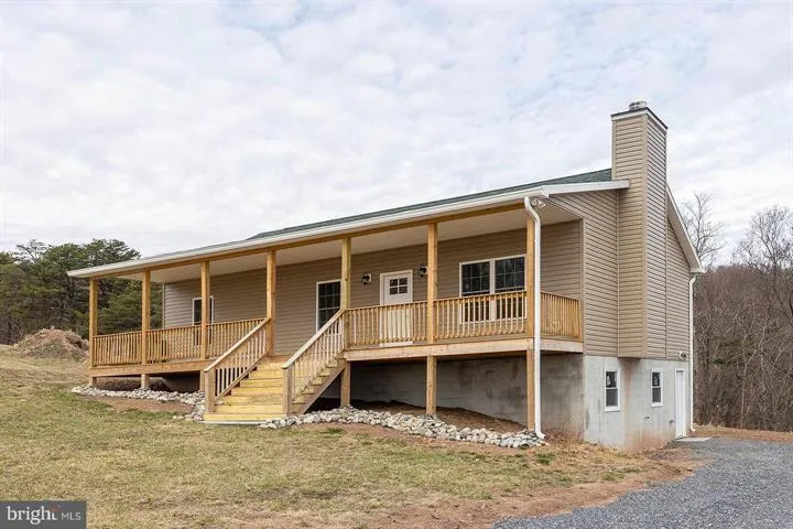 JUST REDUCED!!! BRAND NEW 3BR 2BA RANCHER with 4.112 WOODED ACRES located in LOST MTN Subdivision near Romney. Sit on the FRONT DECK and see MOUNTAIN VIEWS for miles in a distance, For Example:Short Mtn Wildlife Management in Augusta and closer is Stoney Mtn . And you can see mountains in the NORTH direction, too. Home has 9' CEILINGS in Bedrooms . Complete OPEN DESIGN with Kitchen, Dining and Living Room with CATHEDRAL ceiling and WOOD BURNING FIREPLACE with WV Wood Mantel. Porcelain tiled floors in bathrooms made in USA. Beautiful wood floors in Kitchen, Dining and Living Room....The home has a basement with the possibility of finishing to your design with another 1300 sq ft to include the rough in of a bathroom and laundry room. NEW APPLIANCES - Refrigerator, Range, Microwave, Dishwasher, Water Heater and Heat Pump. Lots of Land to add Garage. Neighbors are at a distance, too.