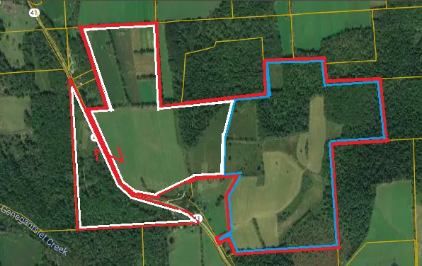 2nd Map legend Blue (this parcel of 130 acres) White (additional parcel) Red (both parcels together)