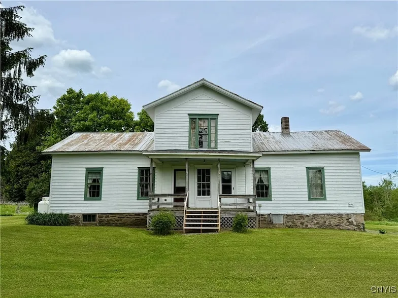Step back in time with the vintage farmhouse charmer! On 28 acres, with lots of original details like trim, wideplank floors, doors and more. The rooms on the first floor are surprisingly large with so much potential. Some sweat equity and maybe a new version of the sweet wallpaper that's currently there, and you've got a country gem! There's a larger first floor bedroom, another smaller one, a full bath, big kitchen with vintage enamel sink with drain board, dining and living areas, and lots of pretty light from the south facing windows. Upstairs a 2 more bedrooms plus an attic space that could be finished. The basement is large enough for a whole season of wood storage plus a workshop space that walks out to the side yard and driveway. Outside, the 28 acres is a mix of woods and fields, with outbuildings for cars, equipment or modify for animals. There is just so much potential here! Short commute to Morrisville and points east on Rt. 20 or to Cazenovia and points west... Right in "equine alley" of Madison County!