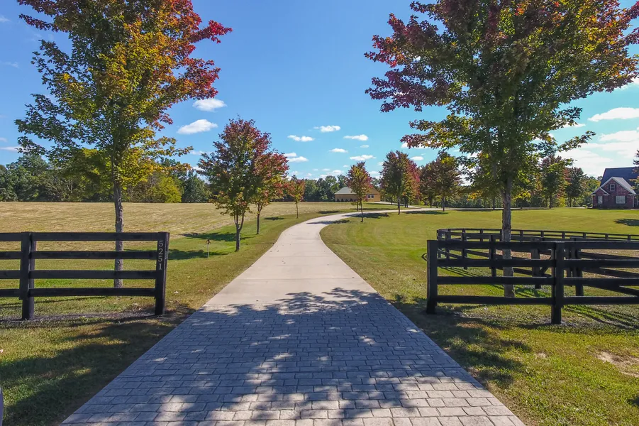 Extraordinary Country Living. Nestled on 28.2 gently rolling acres in the sought-after L'Esprit community is this beautifully maintained home ideal for comfortable living and gracious entertaining. This scenic property fenced with four-board fencing is bordered in the back by Berry Creek and connects to the 25-mile riding and walking trail that winds through L'Esprit. A long, tree-lined drive leads to the beautifully maintained home which overlooks bucolic pastures as well as a fishing pond. The geothermal home features an inviting floor plan ideal for comfortable living as well as gracious entertaining. A two-story great room highlighted by a stone fireplace is flanked by the dining room and large eat-in kitchen. Enjoy alfresco dining on the screened-in porch overlooking the rolling acreage. The flexible floor plan features a first floor master suite and first floor laundry, with three bedrooms and a bonus room (which could serve as another bedroom) on the second floor. The walkout lower level offers an abundance of recreation space, a bedroom and full bath, a kitchenette, plus an office or additional bedroom. The lower level patio features an outdoor fireplace, perfect for fall and spring gatherings. A 36' x 48' outbuilding with concrete floor and drain offers storage for equipment or a workshop and includes a 10' x 48' covered wing which could easily be converted for horse stalls. The owners have a walking trail established around the perimeter of the property for personal use. If you are looking for a quiet country lifestyle with privacy yet a community of neighbors connected by trails, this is a place to call home.