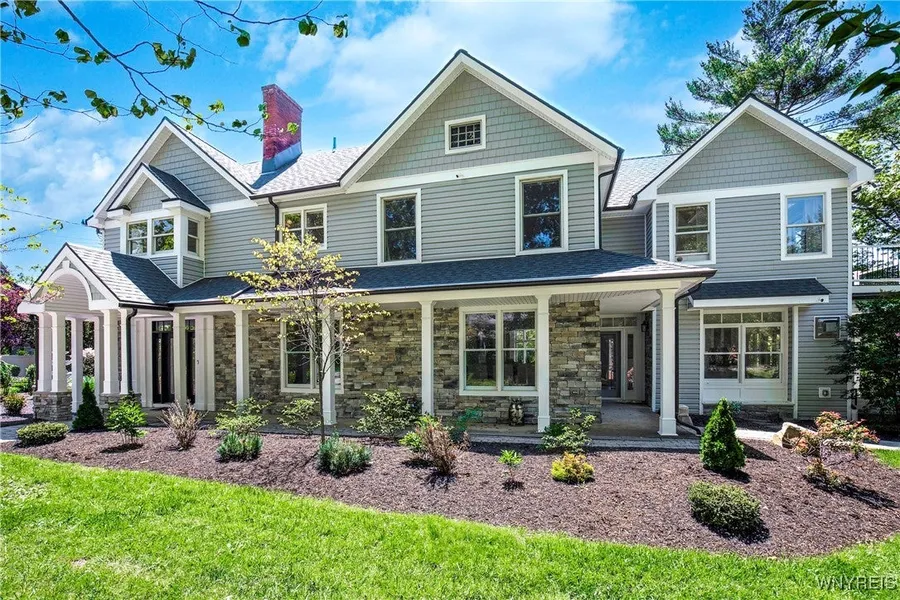 Welcome to your elevated lakefront retreat w/ panoramic views atop the shores of both Lake Erie & Eighteen Mile Creek. Exquisite 5-bed, 3-1/2 bath home boasts not one but TWO primary suites, offering unparalleled comfort & privacy for you & your guests. Nestled in the picturesque Idlewood Community this one-of-a-kind property sits on 28.3 acres (& includes the mouth of Eighteen Mile Creek) – located where history meets luxury & surrounded by tranquility. Founded in 1882 by Buffalo businessmen, this exclusive summer resort community has evolved into a unique & secluded year-round oasis. The EXTENSIVE list of renovations has earned this 1866 home a 2015 effective year built (per tax records). The charm of this historic home, where the Bar Association of Erie County was signed into existence in 1886 (per Seller), has not only been preserved but celebrated. Every corner of this home tells a story. Open concept 1st floor features walls of windows to take in the view & breathtaking sunsets. An enormous gourmet kitchen boasts ivory Wood Mode cabinetry & is expertly equipped w/ SS Wolf & Sub Zero appliances, granite & Spekva mahogany countertops. The original kitchen functions as a prep kitchen. With several options for the dining room location, from casual to elegant, this home knows how to make you feel right at home. A spacious den & office are connected to the family room which offers a seamless transition to multiple patios & the outdoor brick-paved entertaining area. The heart of this space is a striking water feature, complete w/ 2 graceful waterfalls & tranquil koi pond, flanked by BBQ area & abundant space for entertaining. The main primary suite features a spa-like bath, generous WIC, floor-to-ceiling windows, cathedral ceiling w/ exposed beams & its own heating/cooling controls. French doors open to a spacious deck w/ unmatched views. 2nd primary suite features an ensuite whirlpool bath. 3 more bedrooms & additional shared bath round out the 2nd floor. 2-car attached & 3-car detached garage for plenty of storage. This home is a true gem for luxury buyers seeking a one-of-a-kind property that combines lakefront living, historic allure & modern luxuries.