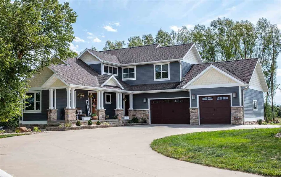 Picturesque is how to describe this home and 28.47 acre property! This 2006 Craftsman style 2 story home was built with elegance in mind! Entering the home you will be greeted with an open concept and 20 foot vaulted ceilings. The office will make you want to work from home everyday as it overlooks all of the land! The kitchen has custom Bertch cabinets, quartz countertops, an island, and a nice pantry closet. Completing the main level is a 1/2 bath, laundry room, a mudroom off the 3 stall garage (which also has in floor heat) and a great deck for entertaining. Heading up the open staircase you will find a scenic owners suite with it's private deck, perfect for morning coffee, a double sided fireplace that can be used from the bedroom or the en suite, a double sink vanity, a walk in closet and a large tiled shower. Two additional bedrooms with large closets and a full bathroom complete the upper level. The walk out basement offers a 4th bedroom, a large family room with kitchenette, storage room and a 3/4 bathroom.This home features high efficient H windows, all 3 levels have in floor heat (6 zones), fiber optic internet, central vac system, and 2 high velocity central air conditioners with no duct work needed. This property is connected to rural water but also has a well for the irrigation system and shed. The 30 x 48 insulated shed is perfect for storing all your toys. It also has a 13x40 attached addition that is heated to work on your toys. The land includes approximately 3.7 acres of yard space with the house, 14.5 acres that are in CRP programs earning $2,782.55 annually, 7.73 acres in the Wind Breaker program earning about $1,236 annually, and some timber. NOTE: There is an additional 33.17 acres with a 3 acre pond, 2 buildable lots, 8 acres of timber, and approximately 11 acres of CRP land that can be purchased for $349,900. Call today for your private showing!