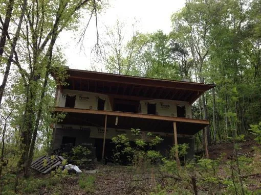 Unfinished home on 28 acres of peaceful, quiet seclusion. Home is ready for you to finish to your liking. This home has wiring, plumbing, walls and subflooring in. Ready to be finished. Well is 505 ft. deep. Needs septic but have permit.