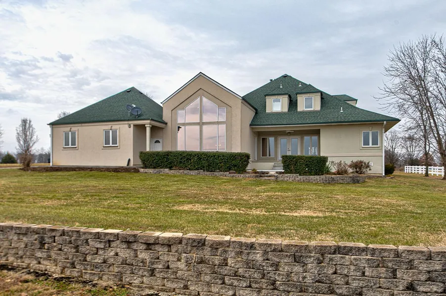 Awesome 2 story 4 BR, 3 BA home w/3 living areas & 3 car gar, situated in a convenient country setting on 28 acres w/a pear tree lined lane & vinyl fenced yard & paddocks. You'll love the huge family room w/20' floor to ceiling glass wall w/south exposure & stacked stone gas fireplace. Adjacent enjoy a chefs kitchen w/all stainless appliances including dual ovens, gas range, warming drawer, recessed commercial refrigerator/freezer, & lots of cabinets to host lg family events. Kitchen dining opens to family room & living dining room is large & exits to a covered & open patio. The main floor master offers a nice dual vanity bath, jetted tub & walk in shower & large walk in closet. 2 additional bedrooms are located downstairs with w/bath offering walk in shower. Upstairs is another huge bedroom & bath with dual vanities, jetted tub & shower. Upstairs also is a large bonus room that has been used as a recreation room & study. Additional features are a wet bar, central vac (including garage), Zoned HVAC's + outdoor wood furnace. Outdoor furnace pumps hot water through the central forced air system and will heat the whole house when economical wood heat is desired.