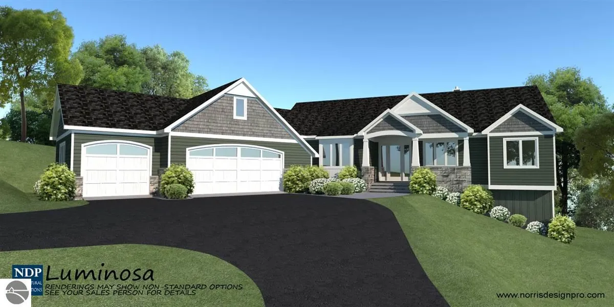 To-Be-Built home on 28 acres in Leelanau County! The " Luminosa " boasts 3203 sq ft with 3 beds and 3 baths. The main floor primary bedroom has a beautiful tray ceiling, 2 walk-in closets, a generous bathroom with tile shower. The open concept living/dining/kitchen areas flow nicely onto a 3 season porch and deck making entertaining a breeze. The main floor office will make it easy to work remotely. The lower level has 2 more bedrooms, a spacious bathroom, a recreation room, and a large storage area with utility room. Stunning, panoramic views of Lake Michigan on this bluff property with 900' of shoreline, located on a private country road will give you privacy to enjoy spectacular sunsets, and northern lights.