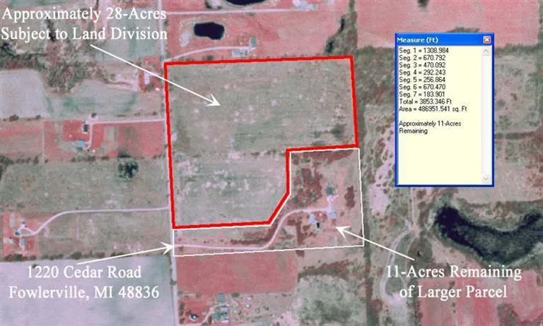 This property is approximately 28-acres in size and is primarily open and level. The parcel has not been farmed in over 25 years and is primarily overgrown with brush and a few trees. This land is very productive ground and is rated by the NRCS at 117 bushels of corn per acre. Soils consist of Berville, Breckenridge, Conover, Metamora, Miami, Ottokee, Owosso and Wesepi soil types. See attached soils map and aerial photograph. Some drain tile already in place. With some site work this property could be turned back into a productive agricultural property. The sale of this land is subject to land division and has multiple parcel numbers. The offered vacant 28-acres is part of a larger parcel with improvements and reflects taxes. Land is currently being hunted. Please contact listing agent before walking the land. ADDRESS: 1220 CEDAR ROAD FOWLERVILLE MI 48836