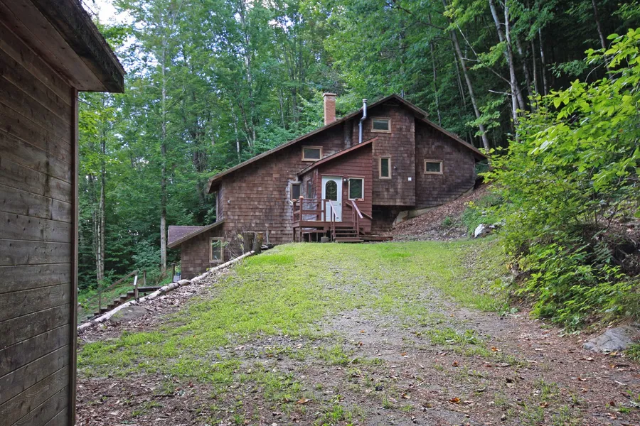 Two for one! A 2-bedroom bungalow with a 1-bedroom guest house on 28 acres. Private yet only 2 miles to the Vermont Law School, or South Royalton green. Two charming homes with small footprints. The main house has an open floor plan with kitchen/dining, living room and separate mudroom on the main level. Find 2 bedrooms, office and bathroom with laundry on the second floor. The deck provides natural shade and views to the lower field. Included is a 2-bedroom guest house equipped with a fireplace, woodstove, deck and one car garage under. Perfect for overflowing guests, in-laws, studio or rental unit. The parcel is mostly wooded with an open section below for gardens or animals. The VAST trail system abuts the property for easy access for snowmobiling, skiing, biking or hiking. Also included is a storage shed and unfinished detached outbuilding. Located close to the VT Law School, Interst...