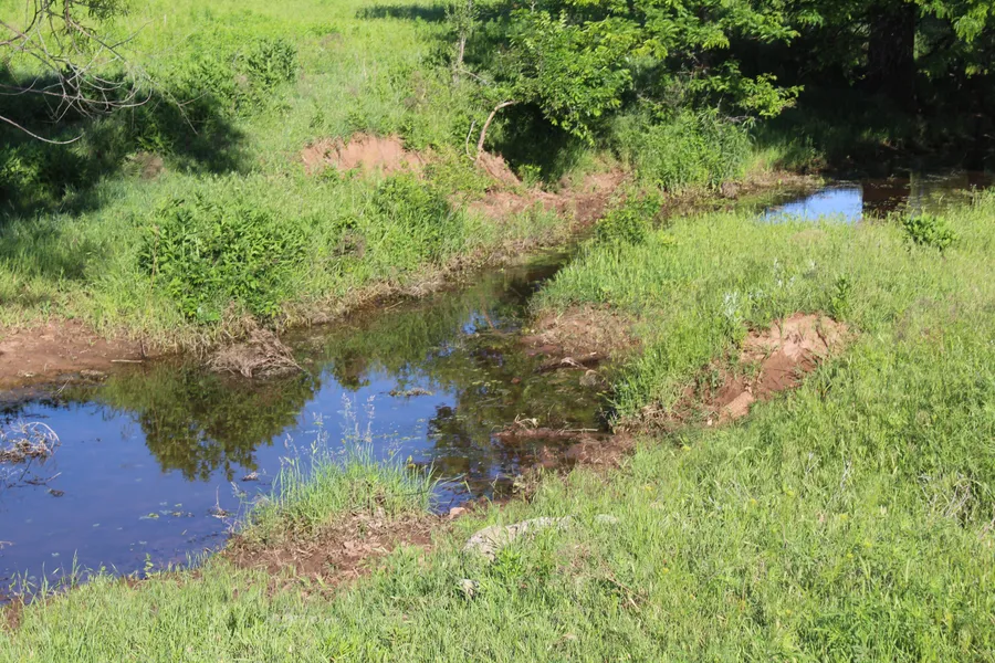 Tract 1 - Sand Creek is a LIVE CREEK SYSTEM that runs through this property providing an excellent water source for livestock and wildlife. On the south side of the creek there is approx. 112 acres of cropland and on the north there is approximately 36.29 acres of crop currently in wheat that is fenced. The balance is native greass with some Bermuda and there are several trees along both sides of the creek. There is a small set of corals and a water well. The fences are good and the potential for a beautiful home site are several. This farm is located in the Moscow Flats area and allows the opportunity to graze livestock and raise your own hay and grain. Live water is rarely available and this farm has 1/2 mile of a prolific creek system. The soil types are Westola Fine Sand Loam, Dale Loam, Carey Silt Loam, and