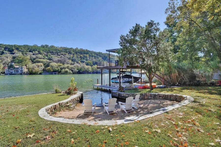 Rare opportunity to build on a gorgeous half an acre lot with 100 +/- feet of waterfront on Lake Austin! 2 Bed | 2 Bath cabin on-site with open Living/Dining/Kitchen concept. A few minutes from central Austin, just West of the 360 Bridge in the coveted Greenshores neighborhood. Amenities include magnificent trees on a completely flat lot, a two-slip boat dock with party deck, private sandy beach cove. Existing cabin is included in list price.