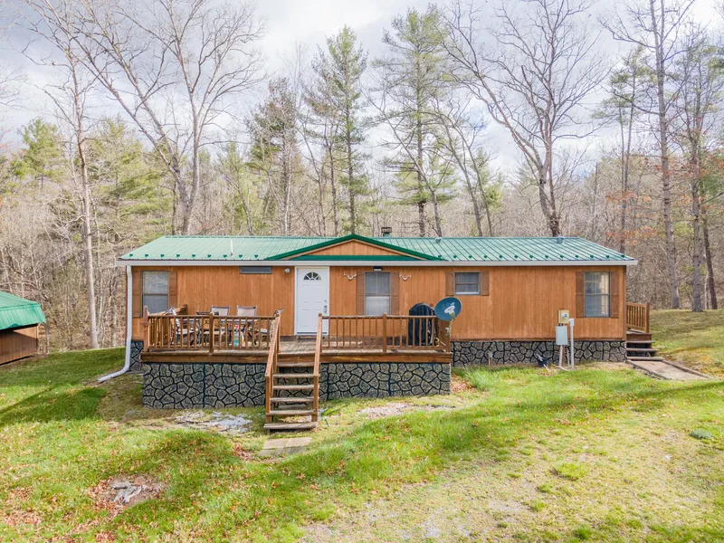 3 BR 2 BA Doublewide home on +/-43.82 acres in Bland, VA. Property is all wooded with the exception of the house site. Would be a great primary residence or a terrific second home in the mountains with plenty of acreage to enjoy. Features include a metal roof, buck stove fireplace, front and rear deck, outbuilding, and an 18'x20' metal garage with 8'x9' roll up door big enough for a small tractor, lawn mower, or possibly even a small passenger car. Heat pump and furnace replaced in 2016. Doublewide built in 1990, +/-1152 square feet finished. Paved and state maintained road frontage on Price Ridge Rd. Well and septic. Survey on file.