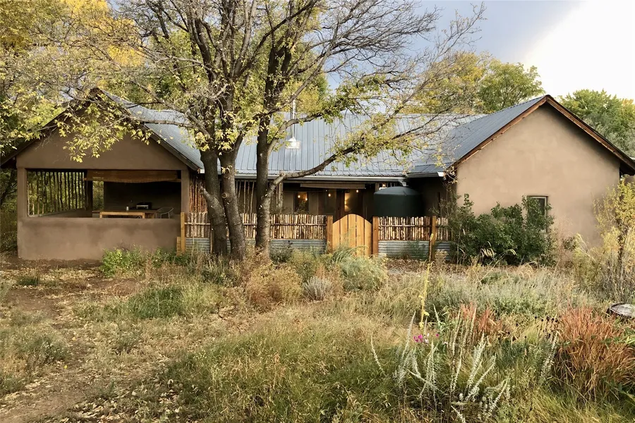 Stunning 5+ acre property in the scenic Embudo Valley known for its small organic farms and vineyards. Includes a two bedroom home, one bedroom casita, 200 sq ft art studio, storage shed, orchard and garden areas, greenhouse, chicken coop, small pond, shade trees, trails, healthy well, forested area, river frontage, and views of the surrounding hills and mesas. Live green in this haven for birds, bees, and other wildlife. This special house, the first legally permitted straw bale house in New Mexico, has 1 ½ baths, laundry room that provides ample storage space, patios, and a deck that looks out over the trees of the riparian bosque. The high R-value keeps you cozy in the winter and cool in the summer. Wood floors. Gorgeous ceilings with vigas. Bancos. Picture windows in the dining area. Fenced back yard. The straw bale casita has incredible floor-to-ceiling antique doors that open to a beautifully designed patio with sunset views of the surrounding hills and mesas. Newly renovated kitchen. Gorgeous tilework in the bathroom. New refrigerator and washing machine. Tile floors. It also has radiant heat, a wood stove, and a mini split for AC and additional heat. Lovingly tended orchard and garden spaces are drip irrigated. You can also use the ½ peon of water rights from the Acequia del Llano or collected rainwater. Raised beds. Many native flowering shrubs that require little to no care. Young heritage apple and other fruit trees ready to bear fruit. Adjoining .77 acre property with partially renovated adobe structure also for sale. (See separate listing.)