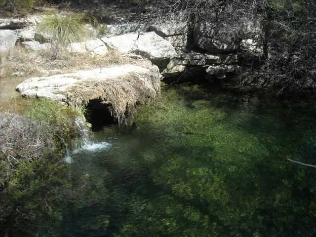 A creek runs along the eastern side of the ranch. A dam has been built on a portion of the creek creating a pond and small waterfall in the area where the water overflows across the dam. In another area along the creek there is a small rock lined natural pool with crystal clear water which makes an excellent more private swimming hole.