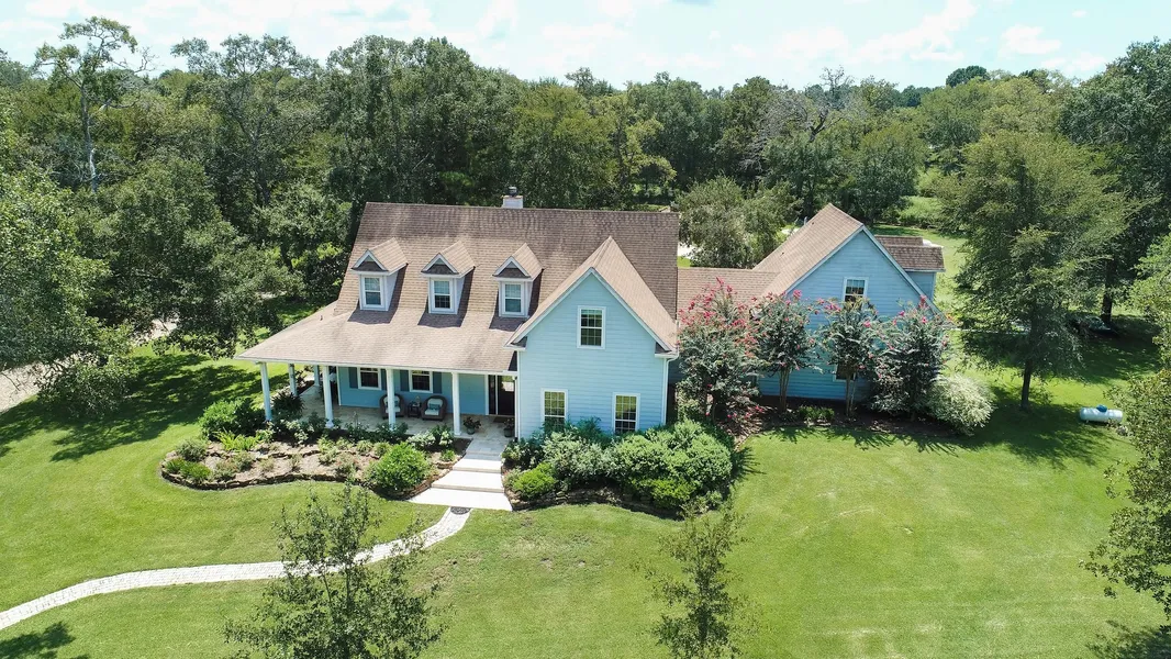 Looking for a peaceful getaway with easy access to North & West Houston? Check out this charming country estate nestled in the woods! Custom home sits on 28+ acres with pool, pond, barn/shop & storage building. Property has gorgeous mature landscaping and gated entry with beautiful tree lined driveway. Sit on the front porch and enjoy the abundance of grazing deer and other wildlife. Crown molding, hardwood plank floors, natural Cherry, Hickory & Oak accents are just a few of the custom features. Island kitchen has plenty of cabinet & counter space. Garage apartment. Oversize garage.