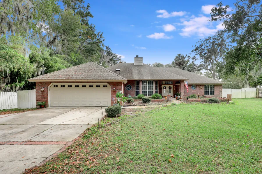 Discover lakeside luxury in this stunning brick home. Boasting over 100 feet of shoreline on Doctors Lake, this property offers private WATER ACCESS. The impressive 165-FOOT DOCK, renovated in 2018, features a 10,000-pound BOAT LIFT and a JET SKI LIFT, both conveniently covered. Step inside this grand home and be greeted by an elegant double-door entryway, and vaulted ceilings. The kitchen is a culinary delight, featuring ample cabinet and counter space, and a hanging pot rack. Relax and unwind in the spacious master suite, with huge windows overlooking Doctors Lake. Every bedroom offers the convenience of its own ensuite bathroom. Outside you'll find a SALTWATER pool, recently resurfaced and equipped with a new pump and heater. Plus, a new roof is being installed, ensuring lasting protection and peace of mind. Located on a quiet dead-end ro...