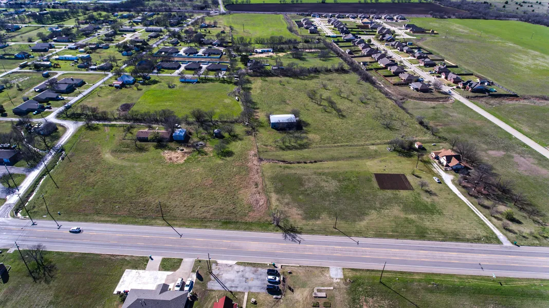 Preston rd frontage with electricity, water, gas and sewer. The home is unihabital and is being sold as is. The property also has a silo and a barn and is agricultural exempt.