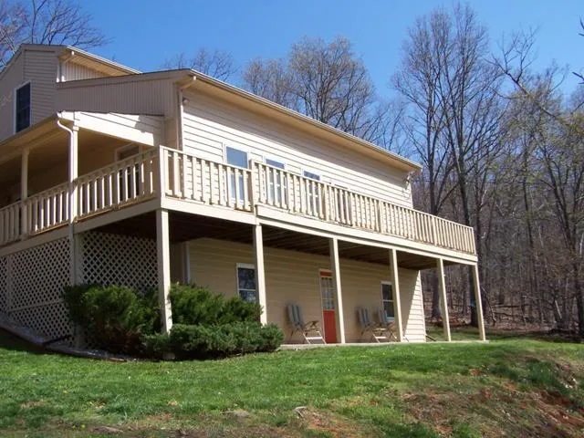 Privacy and seclusion on 5 acres with great views! Home features a large deck that is perfect for enjoying those summer evenings! Large, open kitchen with lots of counter space and separate dining area. Cozy living room has exposed beams for a natural look and a gas log fireplace. Two main-level bedrooms, and the second floor would be a perfect teenager suite! Main-level laundry, and unfinished basement for storage.