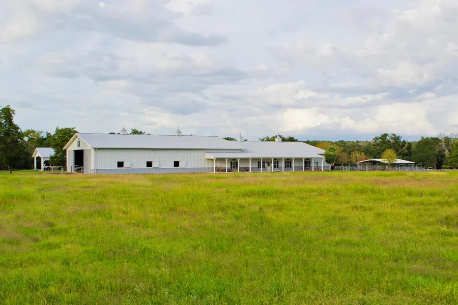 New Price! 29 Acre Cutting Horse Training Facility By FM 1094! One Of A Kind! 13000 sf Morton Steel Barn w/Steel Roof has 8 20x15 Stalls, 15x16 Feed Room, 15x16 Tack Room, Wash Rack, 72x72 Indoor Lighted Arena, 1500 sf Living Quarters w/Office, Lounge, Kitchen, Full Bathroom w/Shower, Storage Room & Utility Room. Main House is 1962 sf 2-Story w/3 Bedrooms, 2.5 Bathrooms, Living Room, Dining Room, Kitchen w/Breakfast Area. 60x36 6-Stall Barnmaster Barn w/Steel Roof. 6-Horse Walker. 6 Covered Runs/Outside Pens. Lighted Large Round Pen. Small Round Pen. Cattle Runs. 1400 sf Tool Shed/Hay Storage Bldg. Outside Party Pavilion. 48x48 Equipment Barn/Carport. Property has 872 ft Old New Ulm Road Frontage, About 10 Acres of Dense Hardwoods in Back of Property, About 20 Acres of Pastures in Front of Property, Well & Septic System & Gravel Driveway w/Personalized Decorative Iron Driveway Gate! Prop...