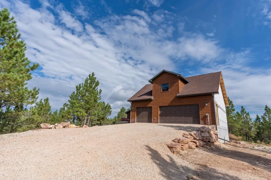 BLACK HILLS DREAM PROPERTY! Nearly 30 acres of beautiful land with amazing long range views, varied terrain, treed hillsides, open meadows, and bordering some public lands, too! Private location on the top of the hill just off a plowed road. Large garage with apartment over it! Originally built to live in while the main home was being attached to it. Enjoy this treasure as it is, or add the home of your dreams! Garage has a half bath, laundry, and is plumbed for a shower. The apartment has 2 bedrooms and one bath. Detached shed and storage container, also. A wonderful place to base your Black Hills adventures from. Located basically an equidistance from Custer and Hot Springs for convenience either way. Come have a look! Bordering BLM land that is full of wildlife - elk, deer, turkeys!