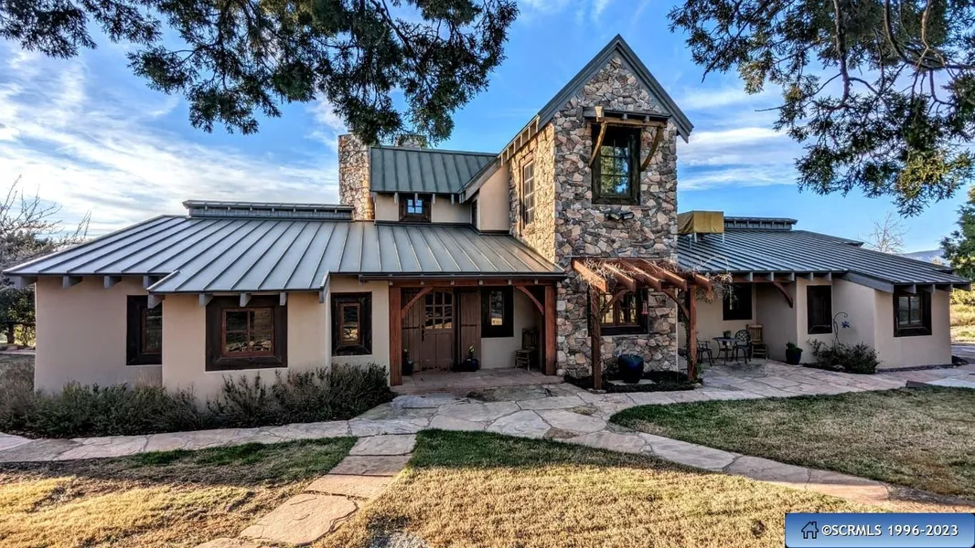 This 2358 sq/ft 3/2 home is magnificently designed and built to incorporate native stone foundations, porch column piers and steps and fireplaces with heavy timber beams/columns, portraying the true spirit of the old western character. You will be greeted by the two Anasazi Bear figures inlaid in the stone entryway below the 2 1\4" thick knotty Alder entry door, leading you into a plethora of custom craftsmanship to attract your attention. Peeled bark trees enhance the interior, complimented by peeled Shaggy Bark Juniper railings, Indian Box-Joint Pine walls, terracotta tile floors with towering 20+ foot ceilings. The 840 sq/ft +/- porch seems to levitate above the canyon, providing indescribable views, privacy and security of remote living in the incredible southwest, a land of rich western history. The photos and description are far from capturing the real allure of Two Bears. The loft presently used for office/exercise equipment, could be a 3rd Bedroom. Come see it to believe it.