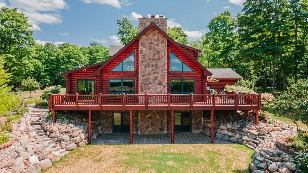 Where to begin ..... this property is spectacular so let me paint you a picture of what awaits you here. The drive into this property sets the table for what you're about to see as you drive up the long driveway leading to a beautiful large log home with a wrap around deck sitting high upon a hill overlooking the landscape to the west which makes an awesome place to sit with a cup of coffee and watch the amazing sunsets over northern Michigan while the deer, occasional black bear, bobcats, and turkeys roam.