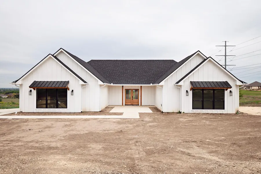 Beautiful new construction home on 10 acres in Salado ISD! The kitchen offers Alderwood custom cabinets, ample counter space, LG appliances (including refrigerator!), and an oversized walk-in pantry. The dining & living room feature vaulted ceilings and stunning views. A half bath off the kitchen is perfect for guests. Two secondary bedrooms share a jack & jill bath with a gorgeous walk-in shower, tub & double vanity. The primary bdrm shares the same beautiful views as the living room. The spacious primary bath boasts a soaking tub, double vanities, and large shower. The laundry room has cabinets, counterspace, a sink, and is accessible from the primary closet. This property will be fully fenced with a mix of pipe and field fencing. Property is ag exempt! Builder offers a 1-2-10 warranty. This plan can be modified for 4 bdrms with a pass-through office. Ask listing agent for more details. Builder is offering $10K in concessions toward buyers closing costs or interest rate buy-down.