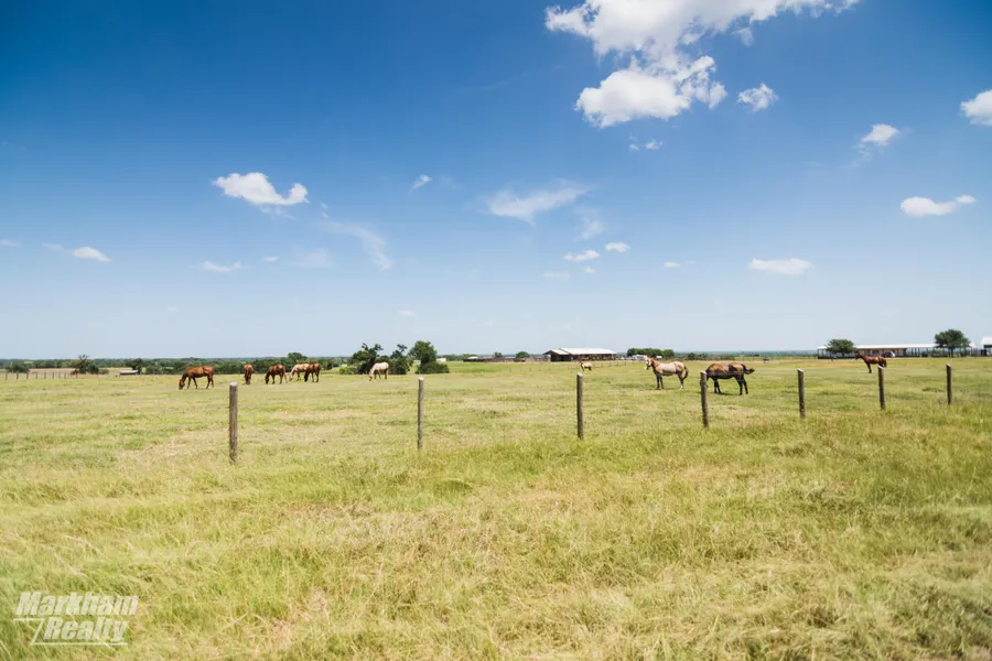 This modern and well maintained 297 +/- acre ranch features a custom 4/3/3, 3,100 +/- square foot home, 12 stall horse barn, 160 x 300 arena, two round pens, employee quarters and additional barns. This well located property offers scenic views from the rolling hills. Good roads, fencing, FM frontage and four lakes are added benefits to the property.
