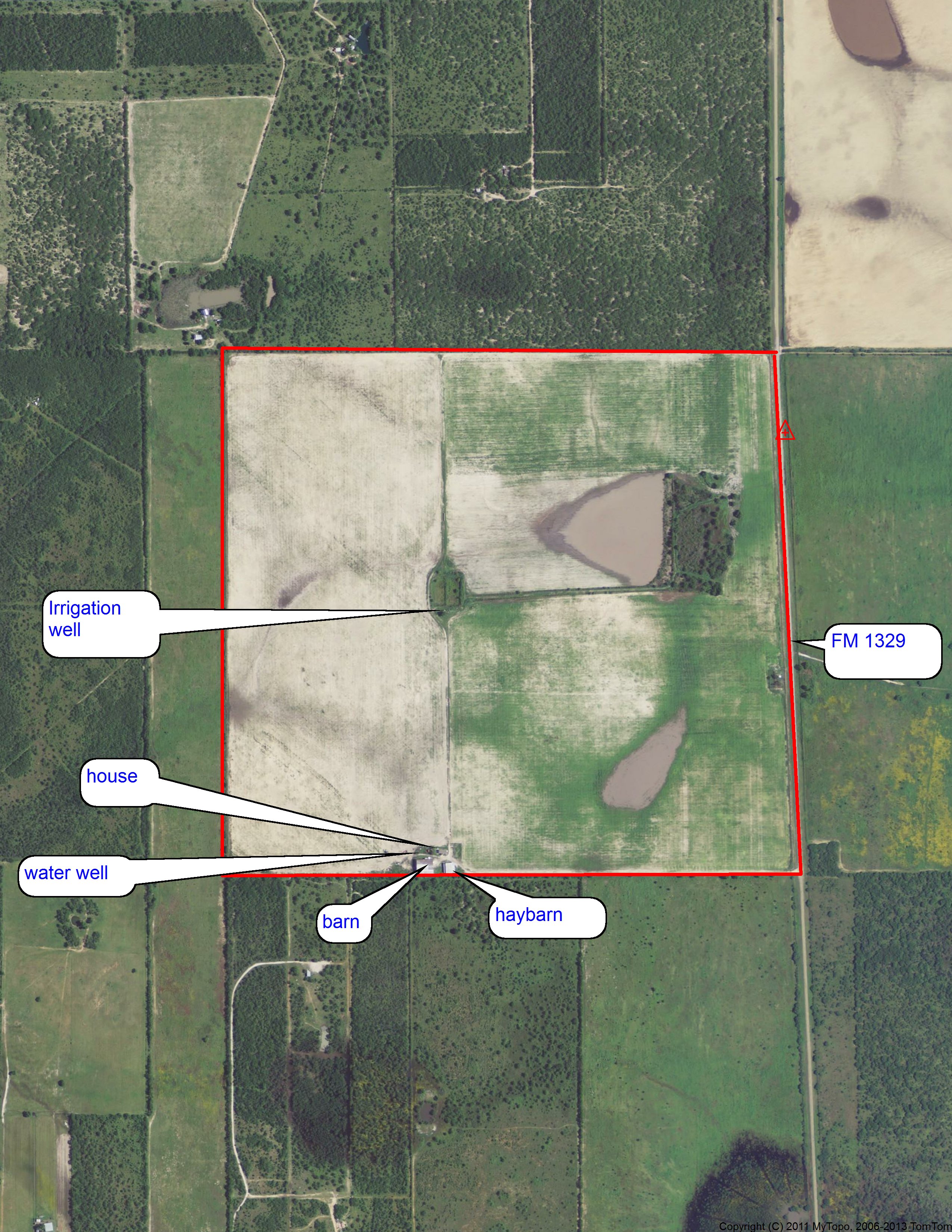 - An irrigation well, (approx. 1,200 gpm) in the middle of the ranch feeds several ponds