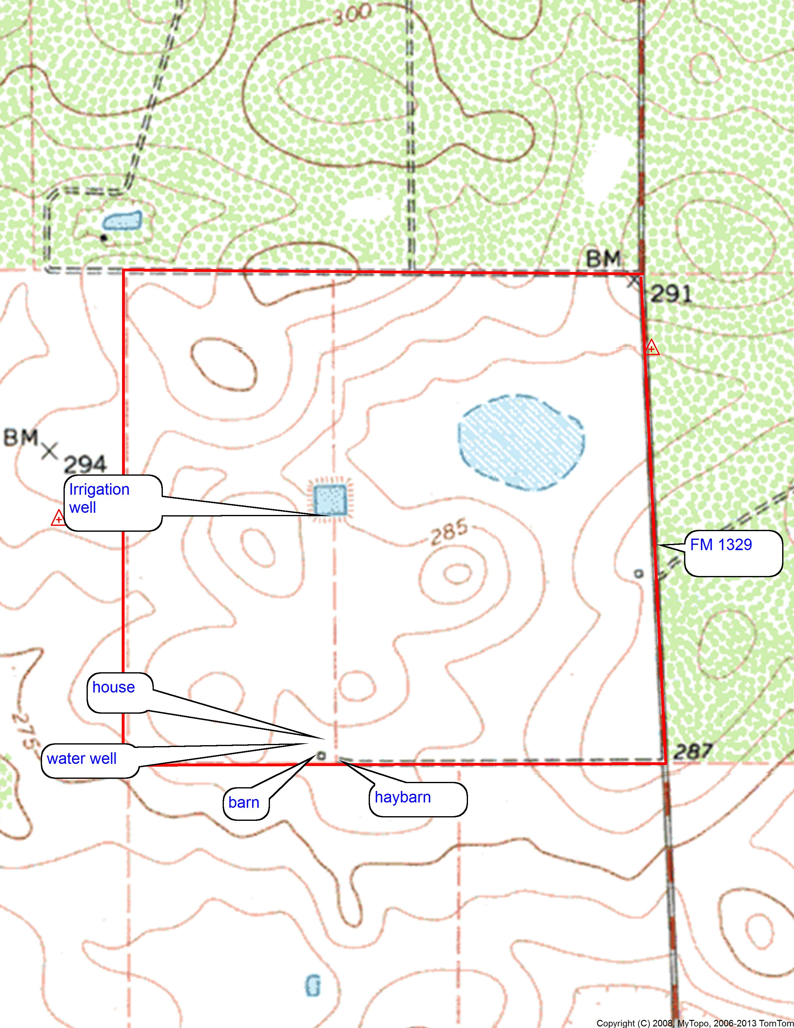 Topography: The topography in this area is flat to gently rolling with predominantly sandy loam soil. The property is all cleared farmland and fenced into three pastures.