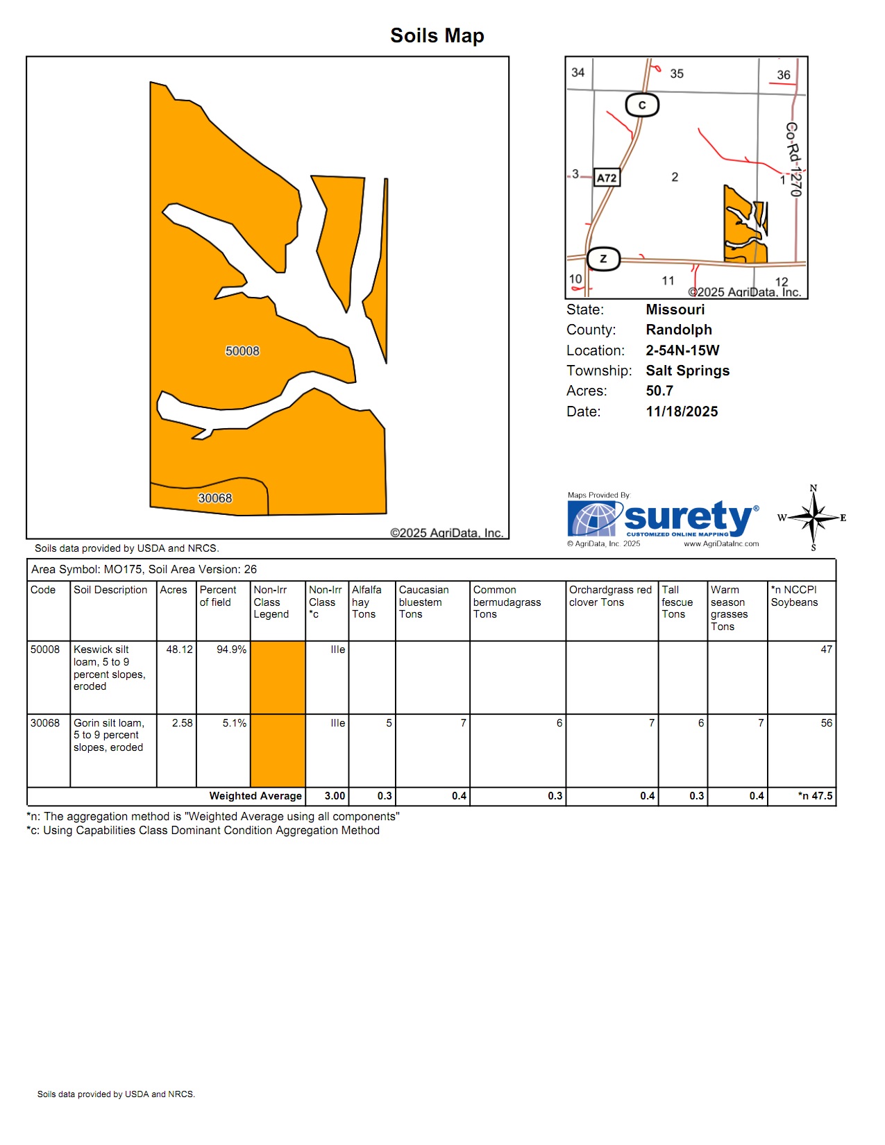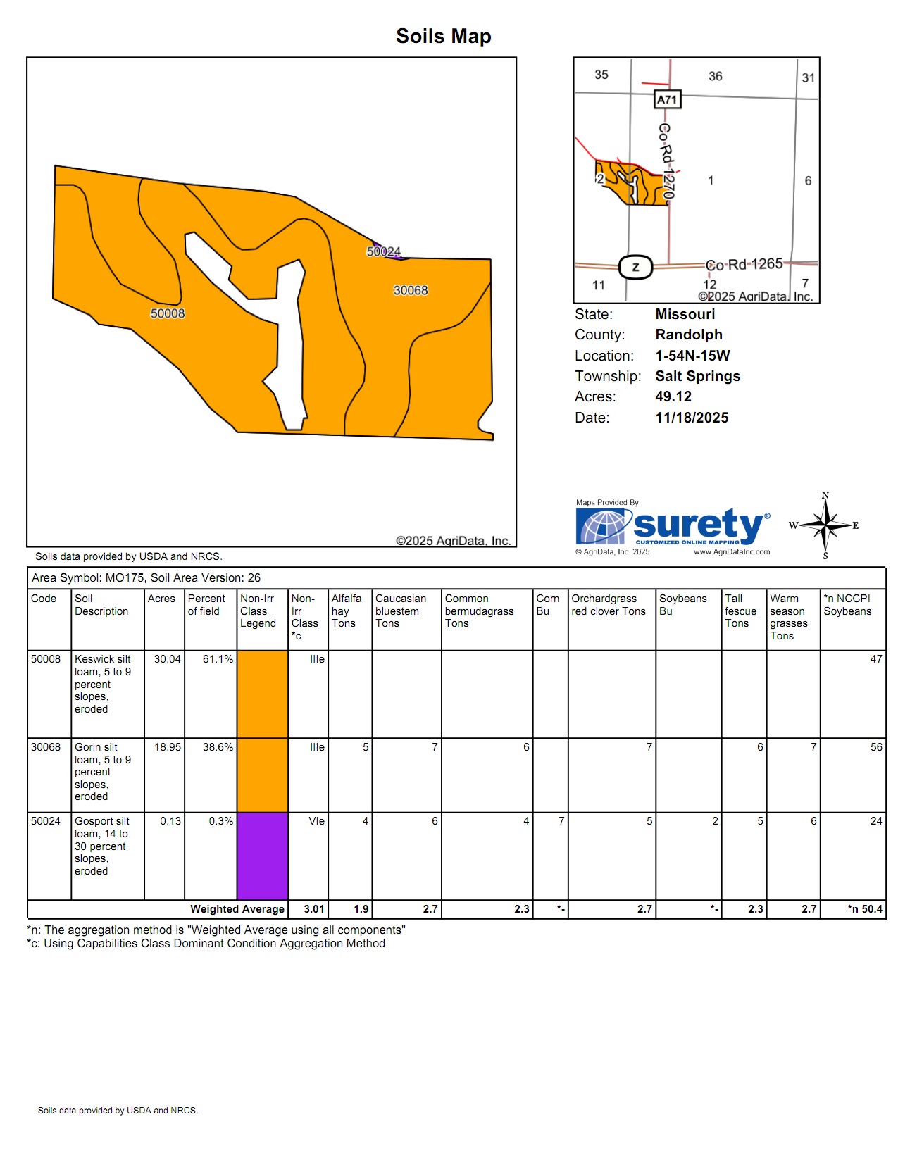 Soils: Gorin, Keswick, Lagonda Silt Loam