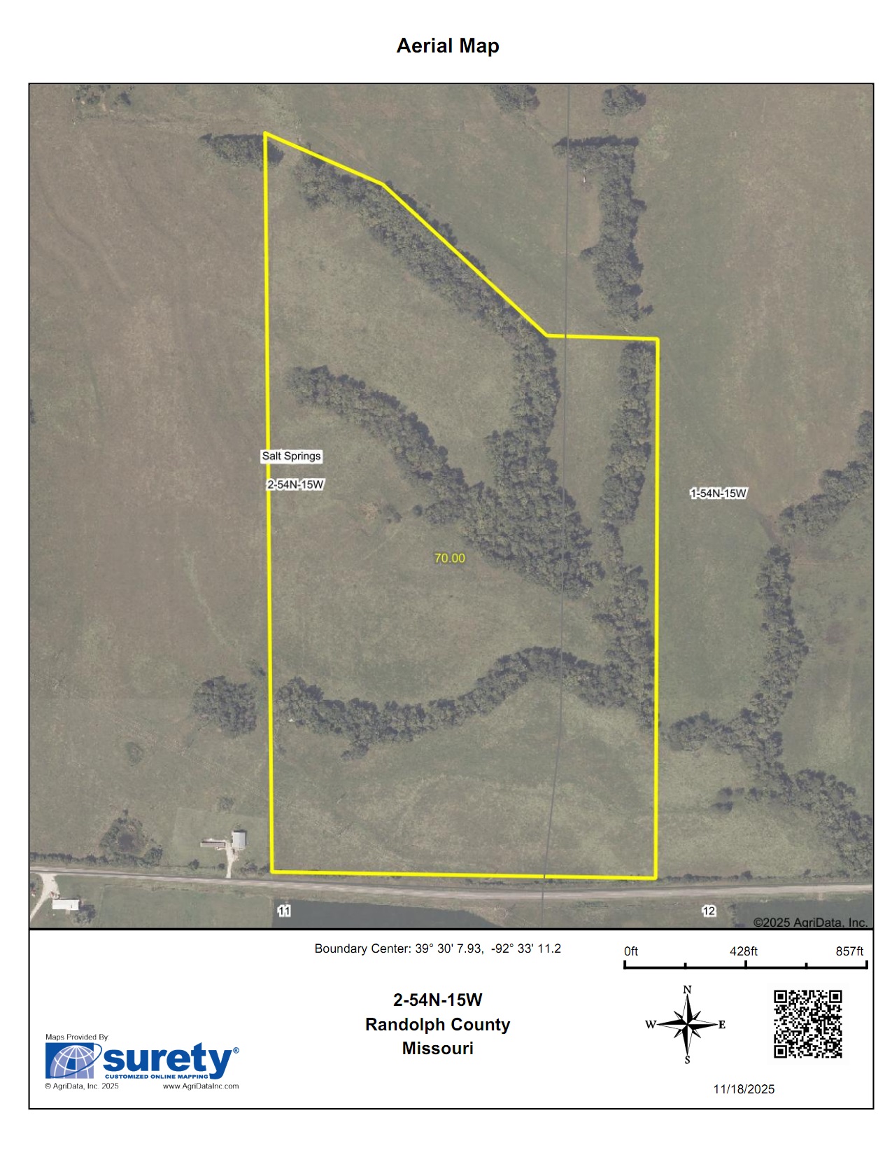Here is a rare chance to purchase prime tillable and recreational land in highly sought-after Randolph County, Missouri. This exceptional property totals 299.6 acres, professionally surveyed into four quality tracts suitable for farming, building sites, and outdoor recreation.