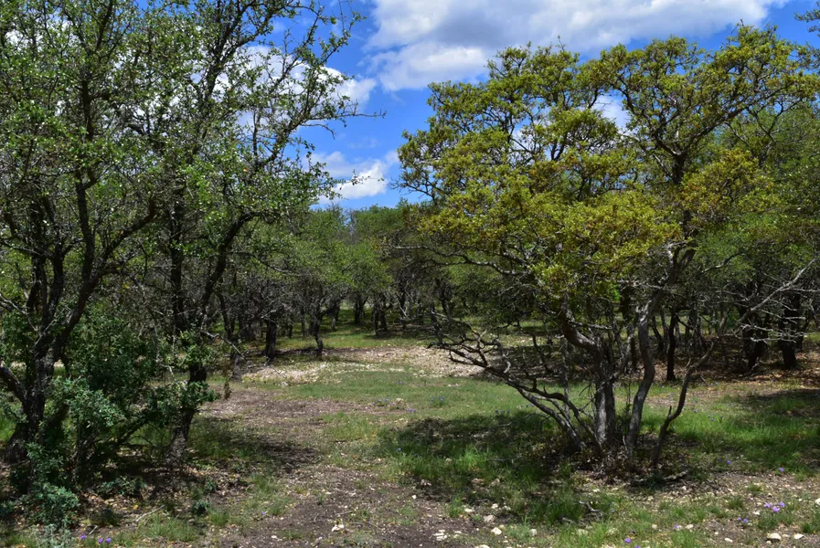 This 11.341 acre get-a-way northwest of Doss has gentle terrain ranging from a level knoll to sloping into two subtle drainage draws. Property has a mixture of Live Oak, shin oak, hackberry, and Spanish Oak. Whitetail and turkey are prevalent in the area. The property is fenced on three sides.