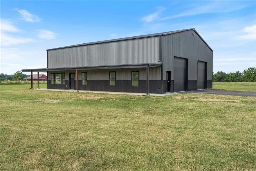 New price and new pictures! Beautiful new construction on 3 acres in a peaceful setting. Minutes from HWY 62, you will find a 50 x 60 barndo with 2600 sqft of living space and 1500 sqft shop/garage area. Primary bedroom and bath on the main level. Primary bath has double vanities, a walk-in shower and soaking tub. Upstairs you will find 3 additional large bedrooms that share a full bath with 2 vanities and a shower tub combo. Breathtaking views from the upper level. A large second living area on the second floor as well. Finished concrete on the main floor while the stairs and upstairs will be LVP. The counter tops are a white quartz in the kitchen and baths. Large laundry/mudroom when you walk in from the garage. The full bathroom in the shop area has a walk-in shower and will feature a black countertop with a stainless-steel sink for easy clean up. Stainless steel microwave/oven combo, dishwasher and refrigerator, glass cooktop stove with ventless hood.