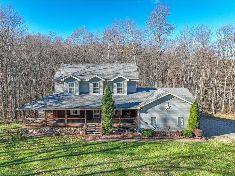 The one you ve been waiting for! Absolutely one of a kind 3 bedroom 2 1/2 bath, with finished basement, built in 2005! 3+ acres! Directly across the street from Ohiopyle State Park! This incredible property features mostly flat yard, a stream that runs through the property, plenty of parking plenty of storage and large rooms! Large L-shaped deck with screened in area for enjoying outdoor time! The foundation of the property is Superior Walls, to maximize stability and dryness! The main bedroom has a beautiful view of the woods behind the home, including large, walk-in closet, smaller closet, and its own full bathroom! The remaining bedrooms are spacious with closets and ceiling fans! The main level of the home features living room, dining room, and kitchen with large entry perfect for home work area or play space. Half bath and laundry area on main level. Large step down garage with 10 foot doors! Must see!
