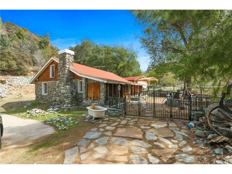 Have you always wanted to own a piece of the mountain? Now is your chance! Found in the San Gabriel Mountains above Azusa are not one but two parcels for the taking totaling a little over three acres. As you cross over the creek on your private bridge amidst your wilderness is a quaint 1 bedroom 1 bath totally modernized house. It consists of an upgraded kitchen with double ovens, microwave, garbage disposal, refrigerator, washer and dryer. French doors access the walk-in pantry that houses a chest freezer and lots of storage. Wood chipped snack bar adjoins the dining room/living room combination. The dining room chandelier is the real McCoy...deer antlers. Two double french doors lead to a wood raised, screened in front porch. The staircase leading up to the loft has hand tooled, wood steps. The stone and wood workings are that of a master craftsman. Venturing outside there are several out buildings. One of which is a carport-covered 5th wheel which is attached to a 12x12 building for more space. It comes with washer/dryer hookups and a bathroom. There is a two car Tuff Shed with automatic door opener and there is plenty of space for RV parking. The property has two wells and two septic tanks. As you look around the property you will find all natural stone walls, solar lighting and a pet area. Currently there is a caretaker living on the property. He is willing to remain or leave as buyer wishes.