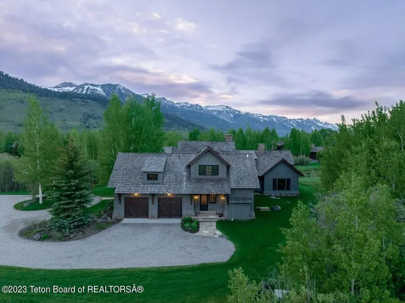 Refined elegance in this 6800 square foot home that blends the best of a traditional style home with a craftsman influence. From the beautifully polished wood floors to the expertly placed wood panelling throughout, the style and detail are unmatched. Each piece of the home was thoughtfully designed to provide comfort and function without sacrificing luxury. A grand wood burning fireplace centers the living room. The cathedral ceilings are framed by the posts and beams throughout. The cozy kitchen offers informal dining while capturing the scenic surroundings. A sunporch adjacent to the kitchen provides a lovely respite from the elements while capturing the scents and sounds from nature. There is ample storage in the kitchen from the custom cabinets and the adjacent butler's pantry. Off the living room is a secluded office and den which leads you to the Primary suite. Completely private from the rest of the home, the homeowner will enjoy a comfortable room, tall ceilings and great natural light. The generous bathroom has a steam shower, soaking tub and twin vanities. Bonus space outside of the closet could be utilized as an additional dressing area, reading nook or smaller office. Plush carpets line the stairs as you make your way to the 4 upstairs guest rooms. Each en-suite room is decorated in subdued colors for a calm and restorative experience. A small TV nook offers an additional area to gather in an intimate setting. The home sits on over 3 acres in the Willowbrook subdivision on the West bank of the snake river. The building envelope was purposely sited within the wetlands of the area. All of the wetlands are adjacent to the Van Winkle Ditch, which is a natural sttream channel that has been manipulated to convey water for irrigation and other purposes. Wildlife is abundant in the area. Moose, fox, deer and elk are regular visitors to this truly spectacular home.