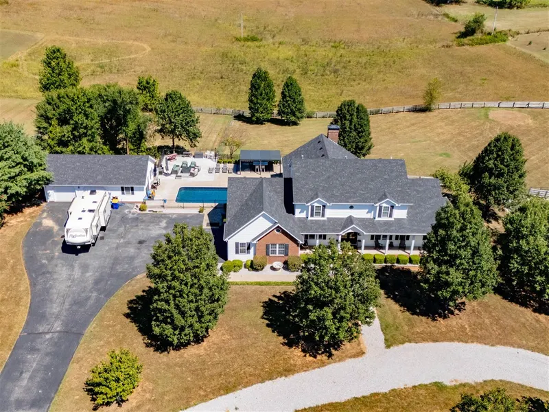 This beautifully updated 4-bedroom, 3.5-bath home offers the perfect blend of comfort, style, and space. Featuring a 2-car attached garage plus an additional 2-car detached garage, this property is designed for convenience and versatility. Inside, you'll love the fresh updates throughout, including new paint, refinished hardwood floors, new carpet, updated light fixtures, blinds, exterior doors, and a newly designed master closet by California Closets. The spacious layout includes a formal dining room, office space, large utility room, and cozy fireplaces in both the living room and the master bedroom. Step outside to your own private retreat with an in-ground pool, pool house, brand-new pool liner, fenced backyard, and a covered front porch perfect for relaxing. A new security system adds peace of mind. Nestled on 3.02± acres in a serene county setting, this home truly has it all‹”indoo...