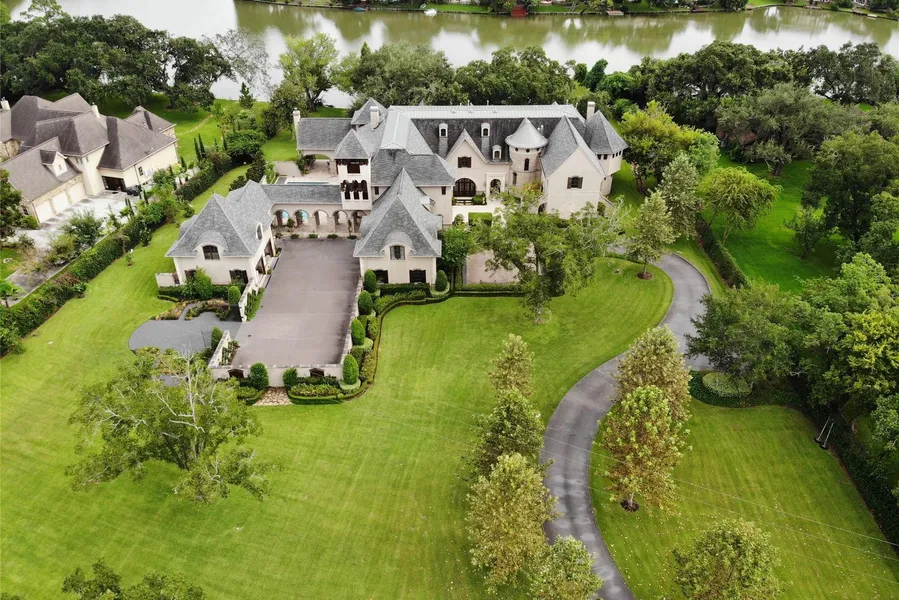 Located only 20 minutes from the Galleria, Normandy on the Lake is nestled on 3 acres amid pristine landscaping with the ebb and flow of Lake Alkire serving as the backdrop for this timeless masterpiece. Recipient of Greater Houston Builder's Association Prism Award in 2014 for design, expert craftsmanship dominates the residence with breathtaking reception hall w/dome ceiling,2 story circular library, 3 fireplaces, 2 reading rooms, spectacular arched-themed gallery, opera room, upstairs game room, elevator,luscious owner's retreat, and chef's kitchen that features crema fil tile backsplash, travertine flooring, suite of premium SS appliances & BKFT Rm w/view of glistening pool. Exquisite dining room opens to central courtyard. Observation tower provides views that are sprinkled w/countless heirloom trees while verdant grounds speak to a park-like setting. Boasting postcard-worthy views, the summer kitchen and sheltered patio are a tranquil oasis for ease of entertaining. Exceptional!