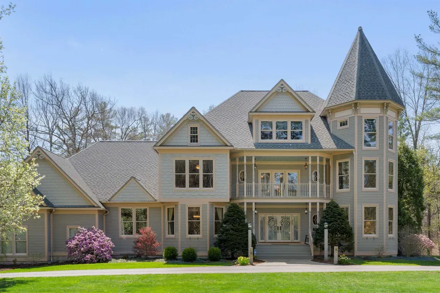 This custom-designed modern Victorian is located in an exclusive neighborhood, just 1 hour from Boston. Upon entering you are welcomed into a grand 3-story foyer with curving staircase and custom woodwork. The kitchen is both elegant and functional with a 18.5' granite island with integrated seating for 5, Subzero fridge, Thermador range and 3 wall ovens (steam convect, microwave, conventional), a walk-in pantry and full butler's pantry. A wet bar with beverage fridge, sink and icemaker adjoins the 2-story family room with wood-buring fireplace. A covered porch surrounds the home and leads you to the newly-installed patio with built-in lighting, firepit and water feature. The property is professionally landscaped with a pond, perfect for winter ice skating! The 1st floor also includes two 1/2 baths, a formal living room, dining room, office and a large storage/laundry room, with wood or tile floors throughout. Upstairs the primary suite features a huge, custom, walk-in closet and a luxury bathroom with a clawfoot soaking tub, heated floors and towel rack and tiled aromatherapy steam shower. 2 large additional bedrooms share a full bath. The 3rd level is perfect for an in-law, au-pair, guest or teen suite with a huge bedroom, office, full bath and bonus space. The 4 car garage with 220 volt service has direct basement access! This unique home is full of craftsmanship and style, perfect for the discerning buyer!