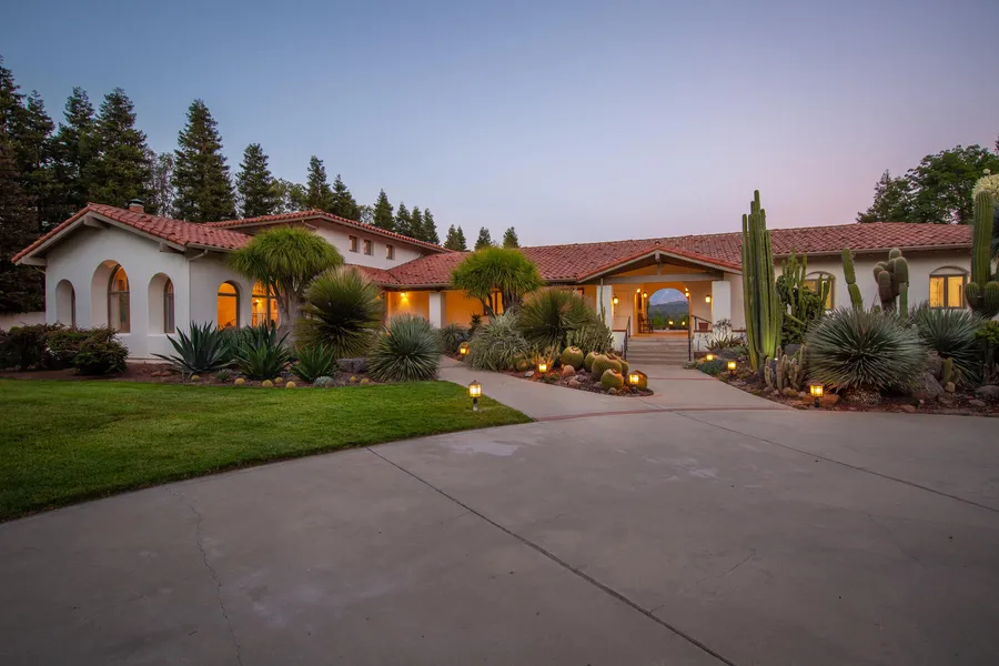 A completely renovated classic Spanish estate in Ojai - on 3 acres with mountain views. Every room has been recently renovated with a rustic yet current aesthetic. The impressive 20' exposed beam ceilings and large arched windows create architectural impact. The kitchen boasts the highest of quality design and finishes including a La Cornue French range beneath a hand plastered 12' tall hood, custom Rift White Oak cabinets, all complemented by honed ivory travertine and White Oak floors. With an awe-inspiring resort style private entrance, the grounds are flourishing with mature cactus gardens, a variety of fruit trees, and many natives all irrigated by your private well. Two water tanks at the rear of the property with 11,000 gallons of storage, plus a back up generator to fully run the home during outages, add to the many amenities this property affords. Also included is a detached off...