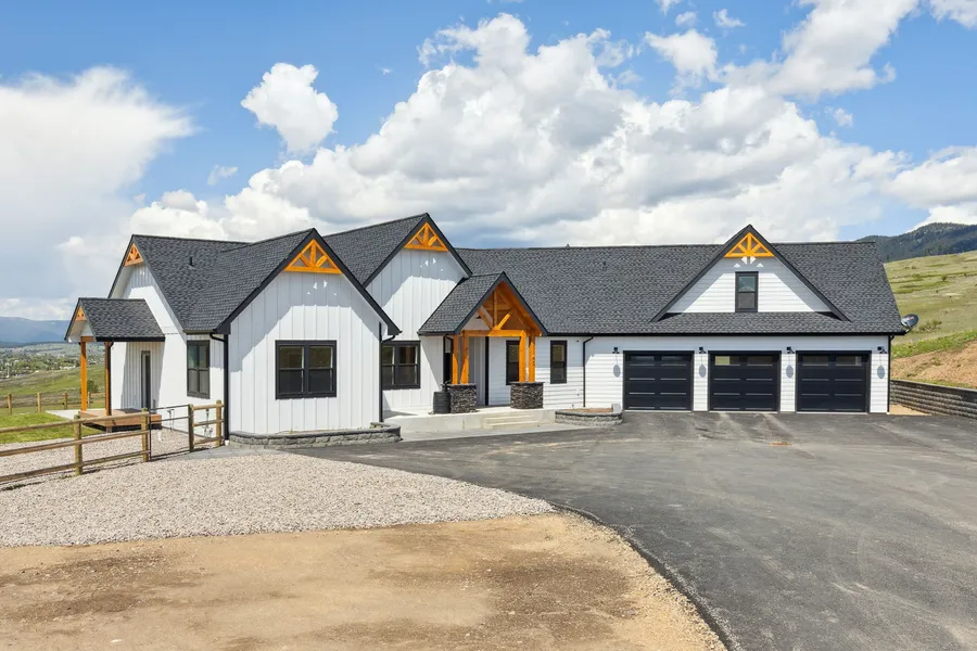 Exquisite custom-built home at 13140 Bunchgrass Court in Frenchtown, MT recently built in 2022 by Meridian Construction. This 3,276 sq. ft. home boasts 4+ bedrooms, 3 bathrooms, and is in immaculate condition with a bright and contemporary color palette. Upon entry, you will be greeted by vaulted ceilings, a wood-burning fireplace, and expansive views of the west, creating a serene home setting that's perfect for relaxation. You will discover the flow of this home thoughtfully planned by the builder along with designer details in every room. Granite countertops and rustic walnut cabinetry throughout the kitchen which is truly a chef's dream! Abundant natural light, an island bar, GE High Profile appliances, and beautiful tile backsplash accents and a copper "tree of life" tile set this kitchen apart from others. The master suite is complete with a soaking tub and generously sized walk-in...