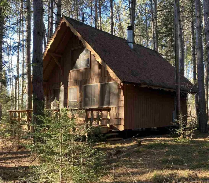 Well built rustic cabin, tucked in a pine plantation. Comes fully furnished with beds, furniture and cookware. Wood stove heater. 22x14 loft sleeping area. No indoor plumbing but includes outdoor privy and storage shed. Close to ATV trail and many lakes